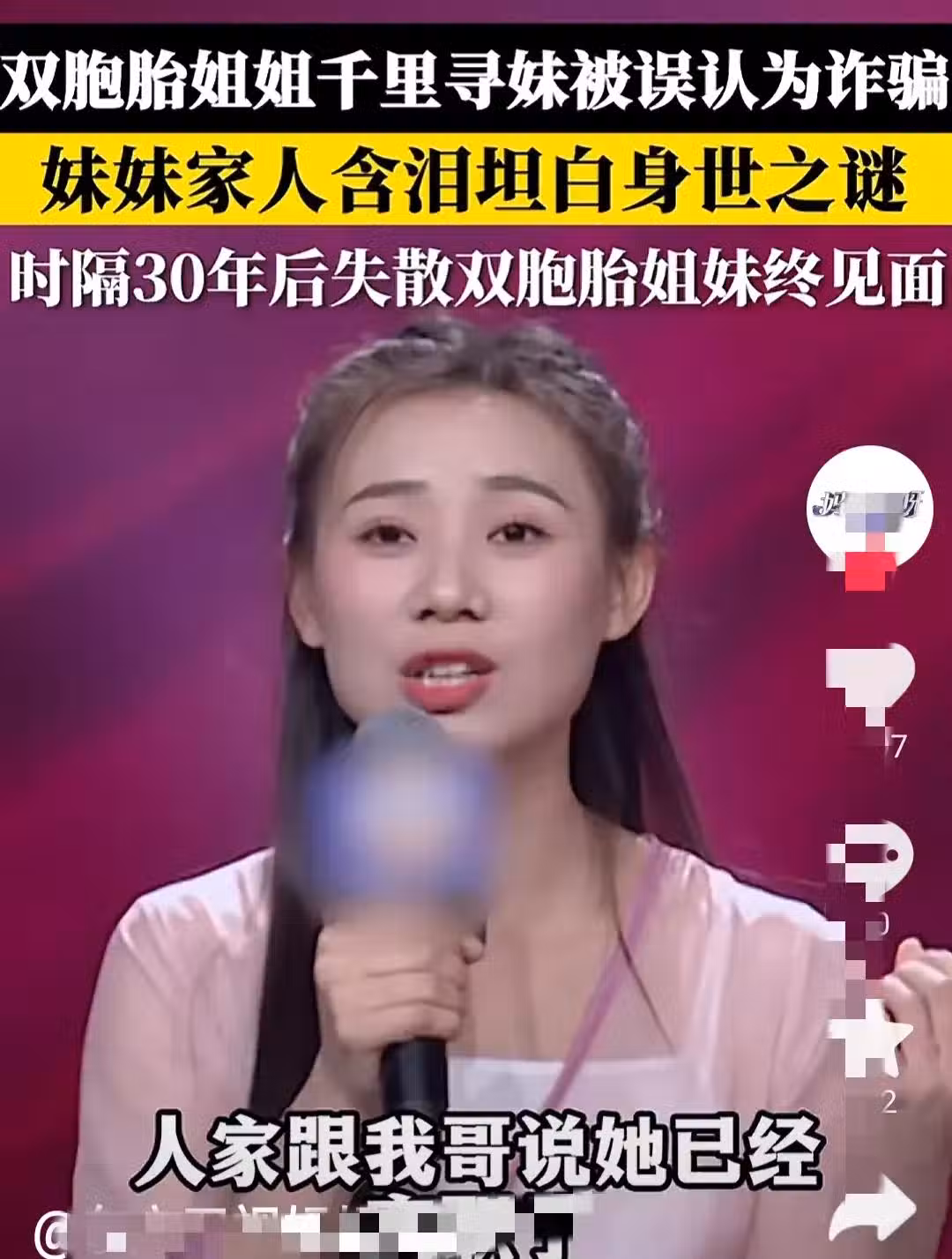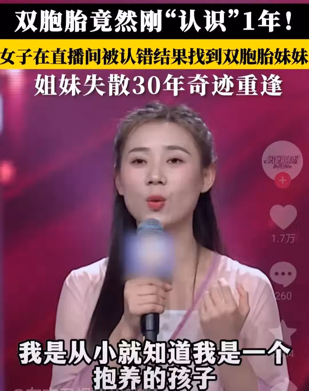 在她的一再逼問下,堂哥只能告訴她,她確實是抱養,但是從哪裡抱養他不得而知,只知道還有一個雙胞胎妹妹,而且你這個雙胞胎妹妹也被送出去了。
