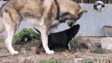 幾隻小奶狗目前才兩個月大,個頭還很小,面對比自己大好多的二哈,它們自然是很害怕,所以哈士奇找到它時,它們就想逃跑,或者直接認慫。