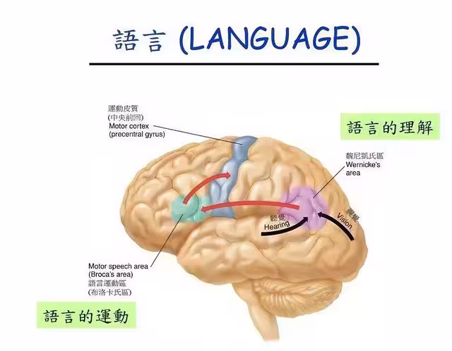 咱們的大腦里藏著兩個專門管語言的「關鍵部門」:布羅卡區和韋尼克區,它們一個負責「說」,一個負責「懂」,配合好了孩子才能順溜說話。