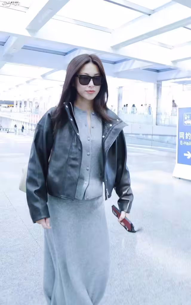 黑色皮夾克可謂是時尚圈的「酷颯擔當」!硬朗皮質、利落剪裁,往身上一穿,瞬間自帶氣場。寬鬆版型也超友好,不管是肉肉女孩還是紙片人,都能穿出「oversize」的隨性。朱珠還搭配了針織套裝,剛柔並濟,能打破皮夾克的硬朗感,日常穿不突兀,出街、通勤都適配,回頭率肯定爆表。