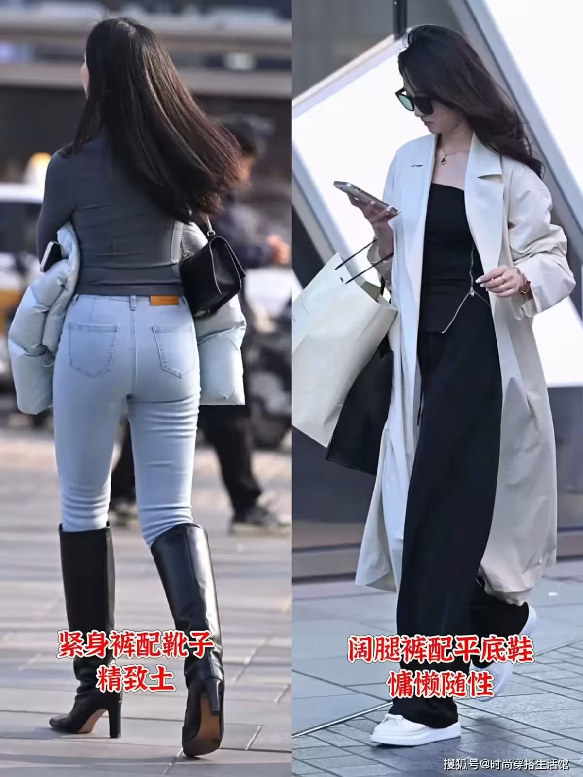 第三章:北京三里屯女生的闊腿褲和平底鞋的搭配套路,太增高顯瘦