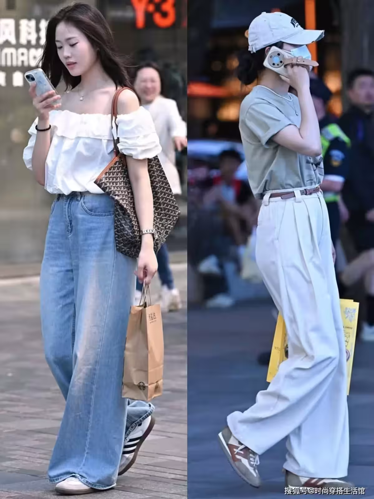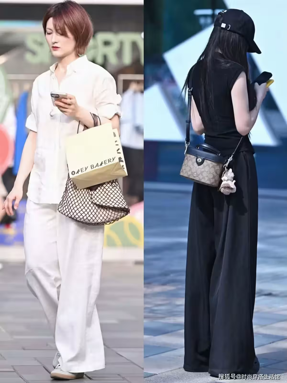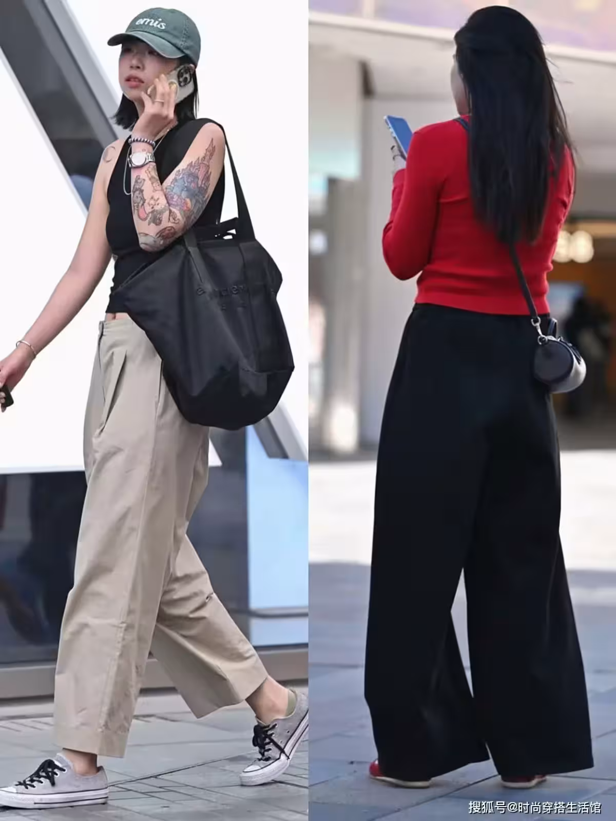 被北京三里屯街拍驚艷了!個個闊腿褲+平底鞋,卻意外的顯瘦顯高
