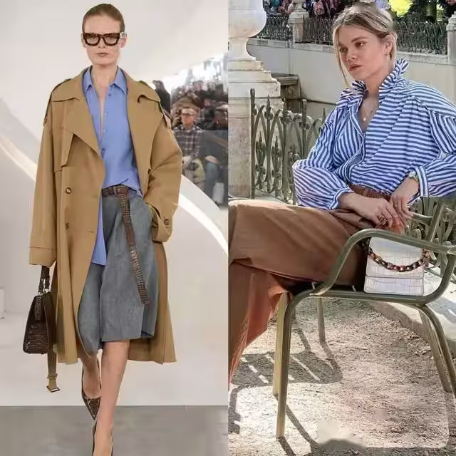 如果你有一件經典的卡其棕風衣的話,很推薦在裡面穿件淺藍色的襯衫,配色非常乾淨高級,又充滿了爽利感,彰顯出職場女生的率性與大氣。