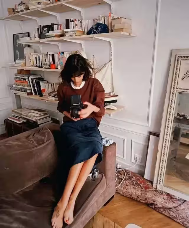 藍色襯衫,乾淨硬朗,帶著少年感,搭配巧克力棕色的長裙,多了一絲沉穩優雅的氣質,非常適合正式場合。