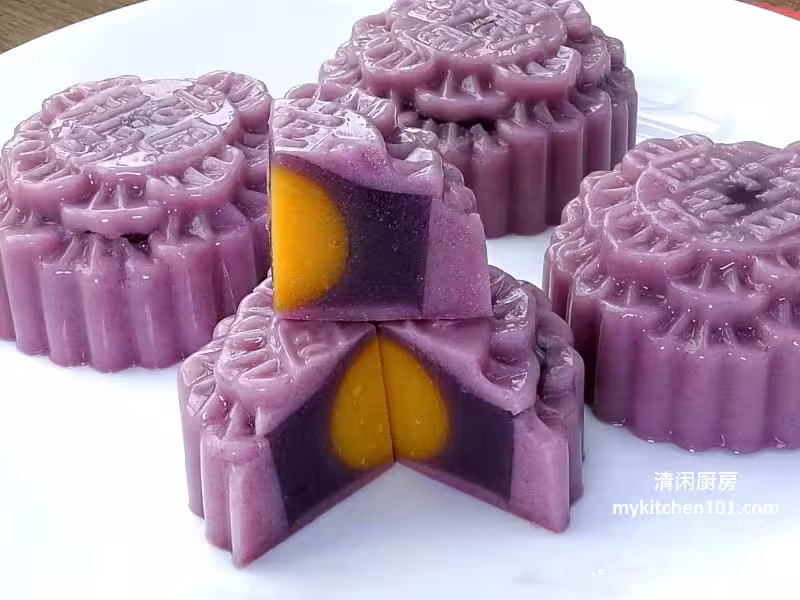紫薯燕菜月餅是一款獨特且美味的月餅, 結合了紫薯的甜美和燕菜的清爽, 使其成為一道令人驚艷的中秋佳品。這款月餅的外皮以紫薯湯為基礎, 而內餡則由紫薯泥與金瓜、綠豆混合製成的「蛋黃」組合而成。通過這種巧妙的搭配, 這款燕菜月餅不僅在口感上令人滿意, 其獨特的紫色外觀也使其成為一道視覺和味覺的雙重享受。