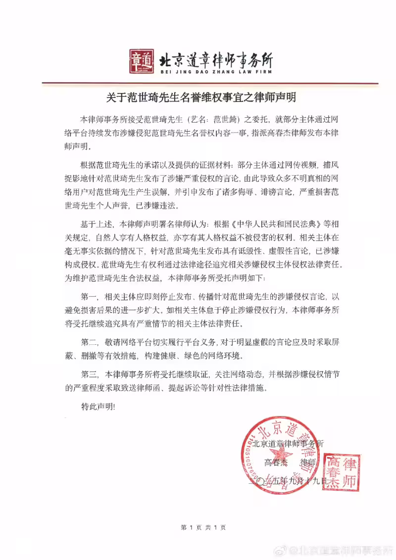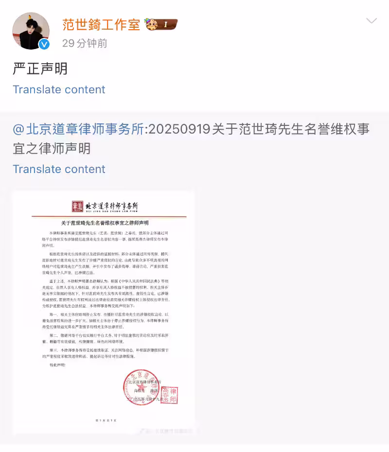 被傳涉及於朦朧案!范世錡評論區淪陷,工作室發聲明!
