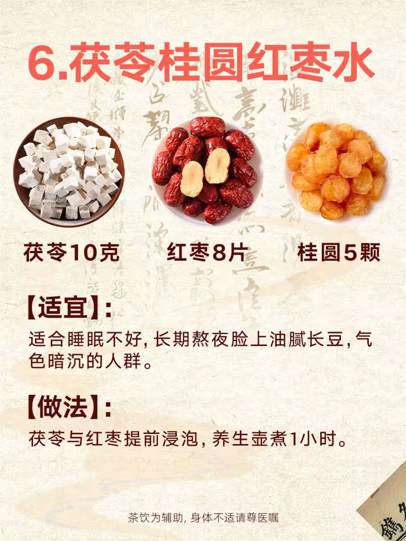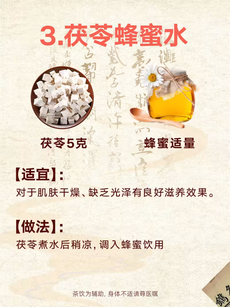 🌱《本草綱目拾遺》記載:茯苓「久服令人面若童顏,白皙悅澤」,可見茯苓在內調美/白方面確實「有一手」,在古代醫籍中就備受推崇,是調養膚色暗黃、追求肌膚透亮的常用💊材~