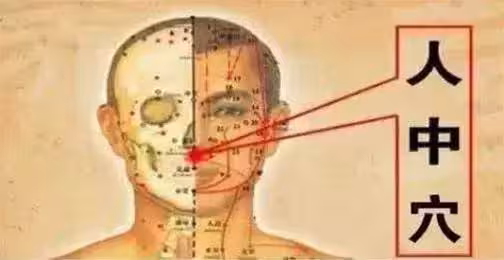 人中是督脈穴位,點按它可以振奮陽氣,緩解痙攣。