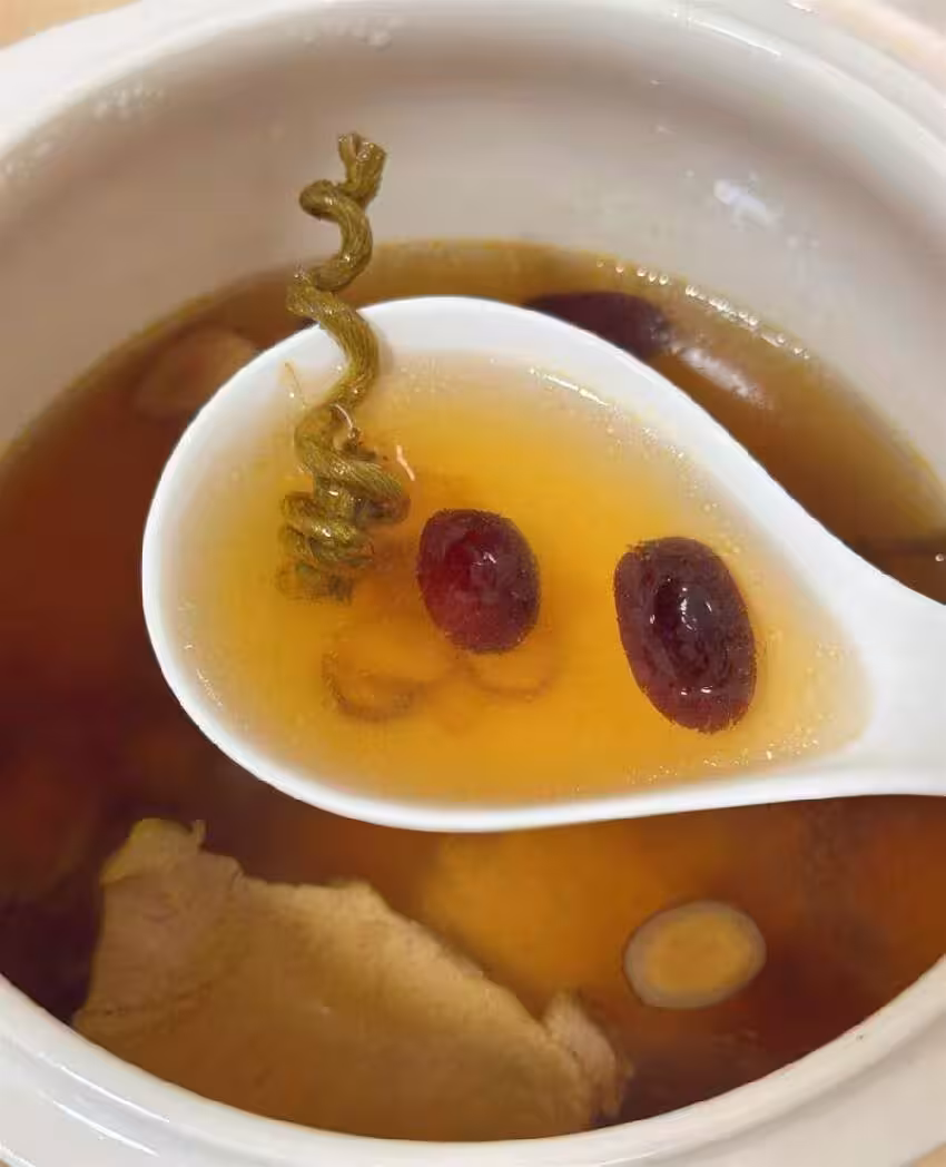 豬瘦肉 200g、丹參 適量、西洋參 適量、紅棗 2顆、石斛 適量、田七 適量、鹽 少許