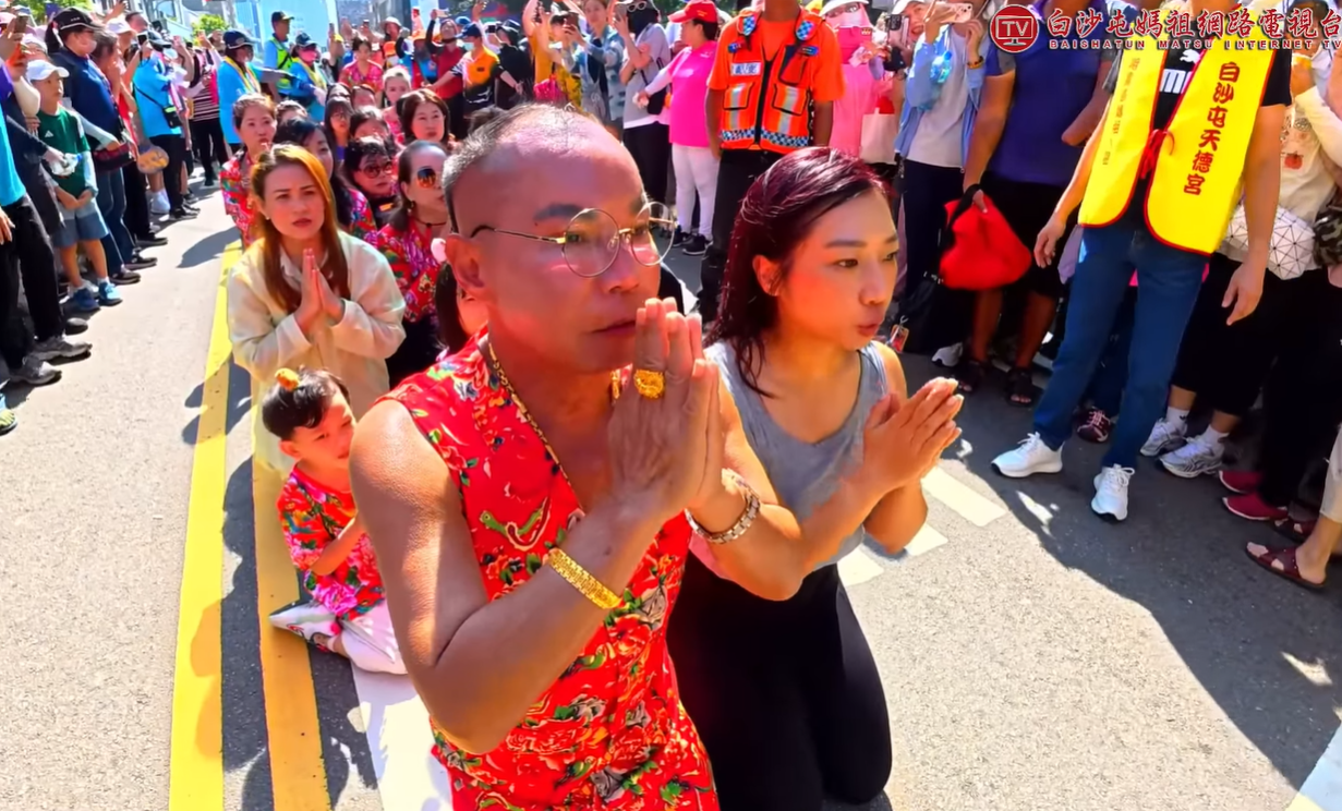 一大早九點多,胡漢龑就帶著親友團在文信路虔誠等候,準備迎接白沙屯媽祖。一家人跪地迎接神轎,高聲喊著「媽祖!我愛你!」,並依序鑽轎底祈求平安。原本媽祖賜福完準備離開,卻突然轉了180度,直接朝著胡董那棟價值5億的羅浮宮豪宅前進。
