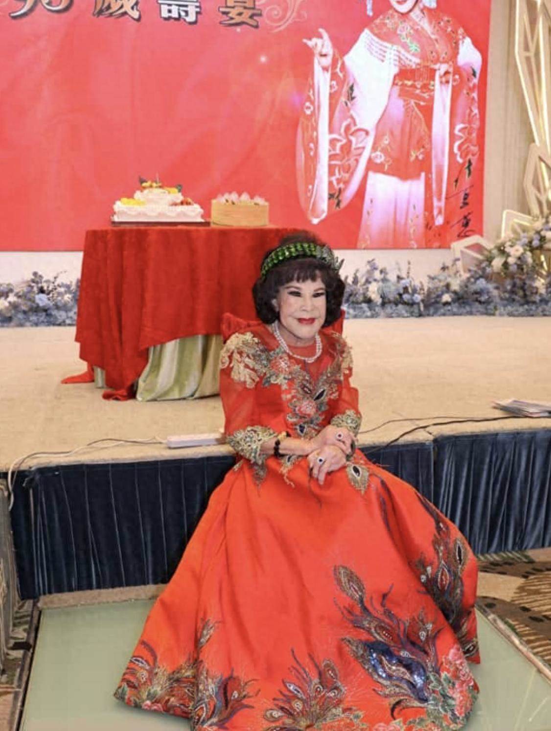 香港資深女藝人黃夏蕙在2025年迎來95歲生日。95歲依然活躍在各種公開場合,能走能行,能吃能喝,生龍活虎一般,喜歡熱鬧的她,自然要大肆慶祝一番。黃夏蕙在香港人緣頗好,所她在尖沙咀大擺了60桌宴席,有大約500人參加,場面可想而知有多震撼與熱鬧。黃夏蕙當天打扮隆重、喜慶,穿了一身大紅色的長裙,裙子上繡有牡丹與鳳尾,而她穿金戴銀,頭戴皇冠,手指上戴了兩顆閃耀的藍寶石鑽戒,相當貴氣。