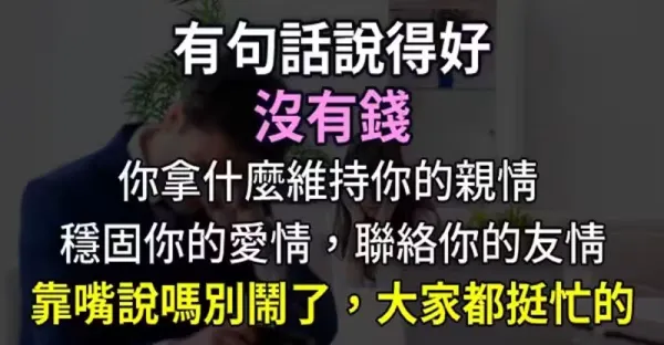 沒有錢,你拿什麼維持你的親情、穩固你的愛情、聯絡你的友情?靠嘴說嗎?別鬧了,大家都挺忙的 !