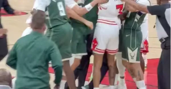 嚯!打起來了!刺激!這才季前賽啊!咋總有你倆呢