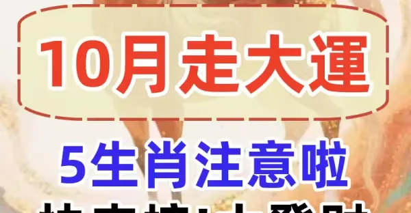 5生肖注意啦!10月走大運,不是財源大發,就是大獎千萬~