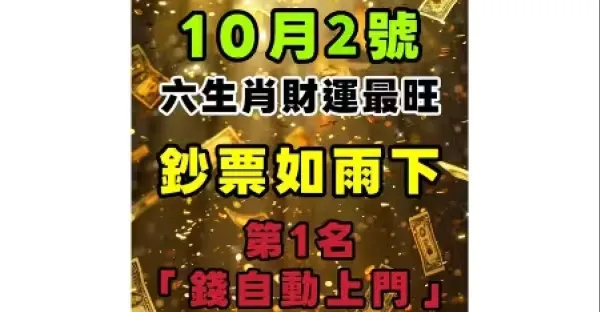 【10月2日】六生肖財運最旺 ,鈔票如雨下!第一名「 錢自動上門 」